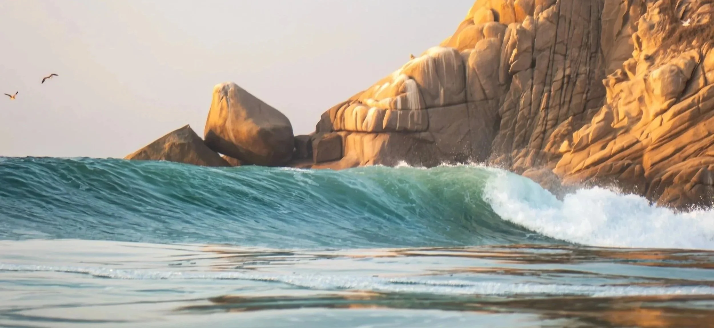 Captured from the lineup at Barra de la Cruz, this golden-hour scene frames a peeling wave beneath the region’s iconic granite cliffs. Blending motion, light, and timeless coastal geology, the image reflects the beauty and quiet power that define one of Mexico’s most legendary surf landscapes.